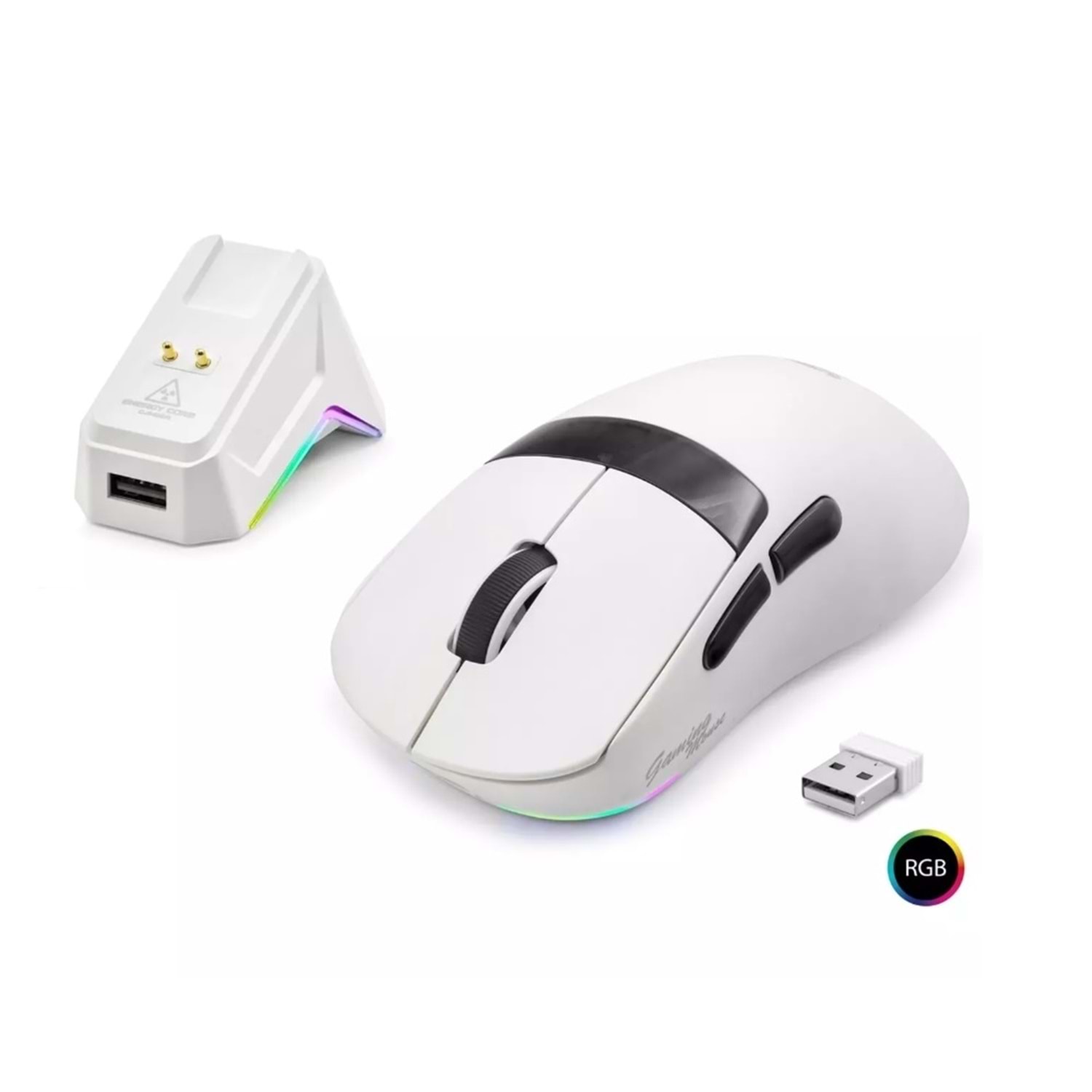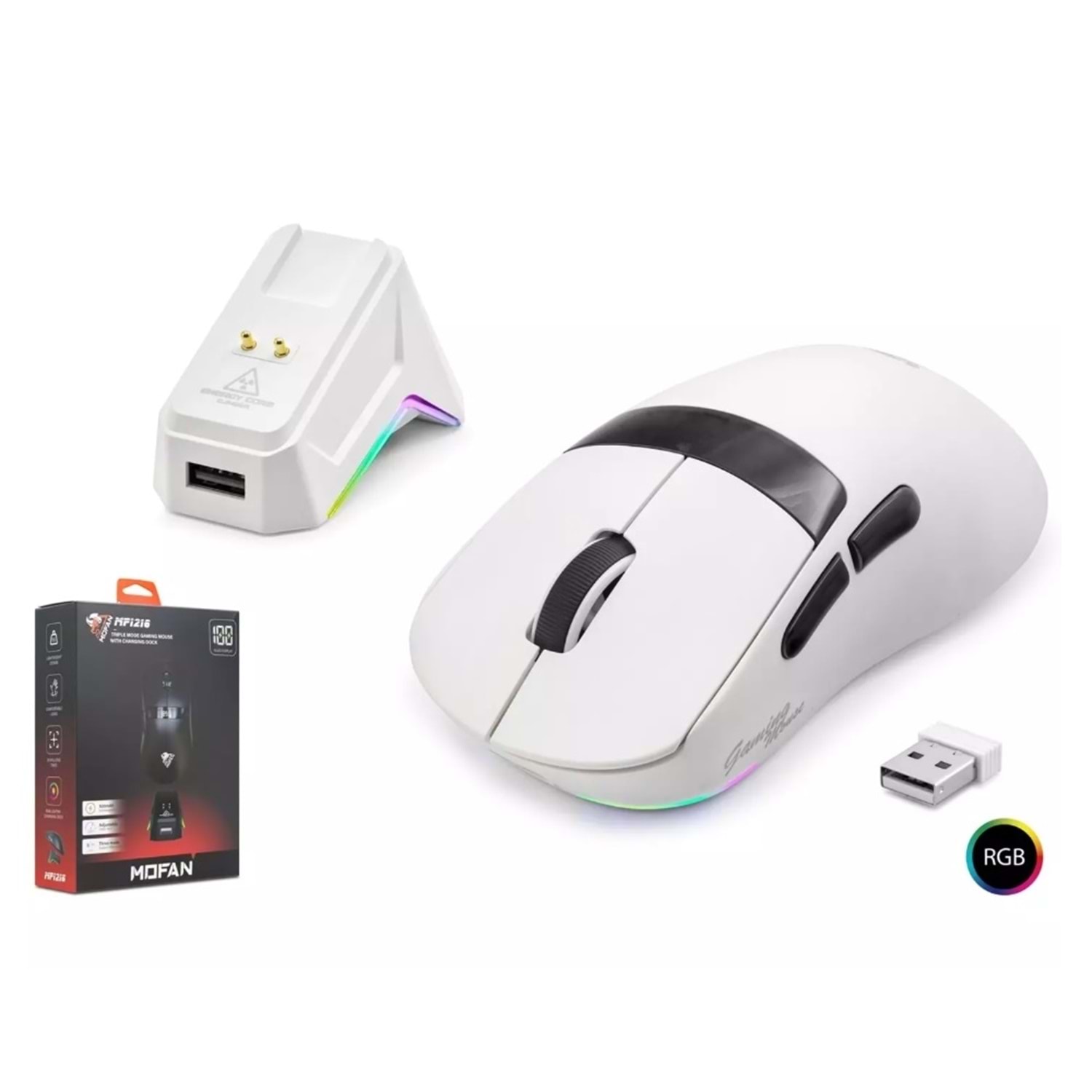 Mofan MF1216W Kablosuz Gaming RGB Mouse Şarj Standlı - Beyaz