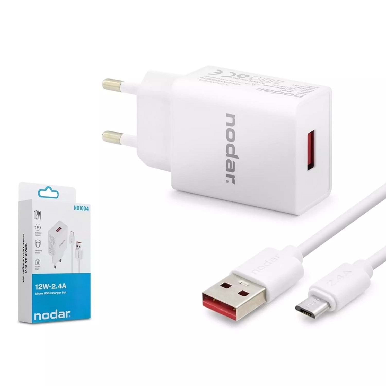 Nodar Nd1004 Micro Usb Şarj Seti 2.4A 12W Beyaz