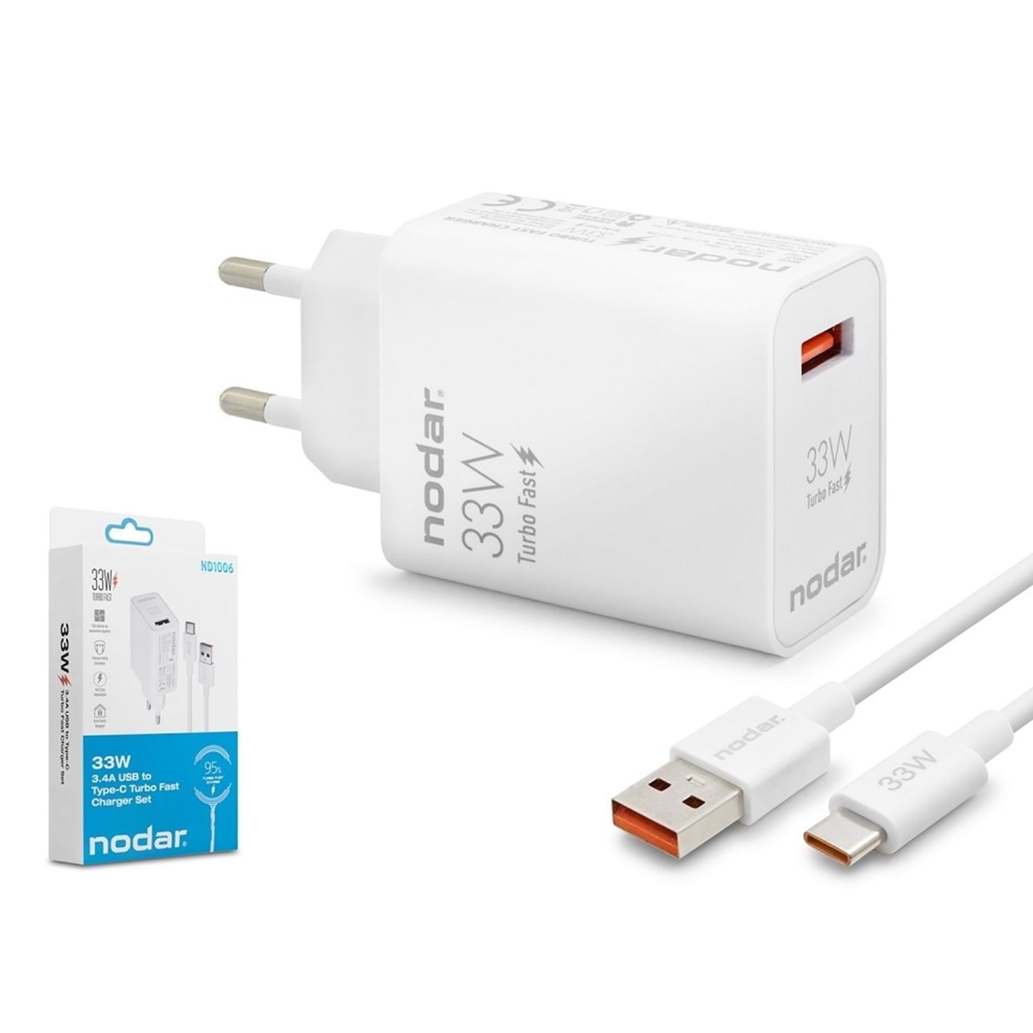 Nodar Nd1006 Usb To Type-C Turbo Fast Şarj Seti 33W Beyaz