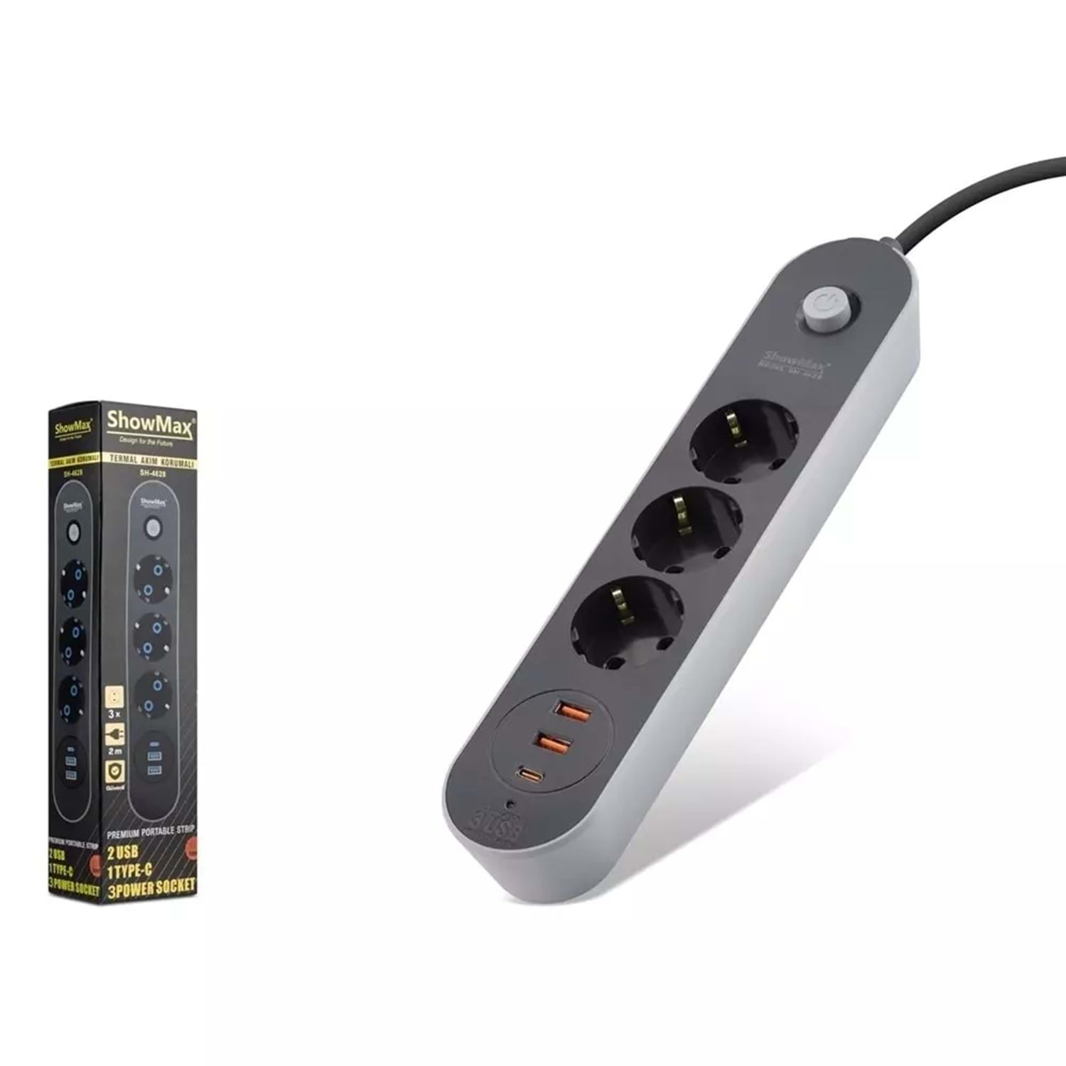 Showmax Sh-4628 3lü Akım Korumalı Priz 2 Metre Anahtarlı 10A 2500 Watt 2Xusb 1Xtype-C
